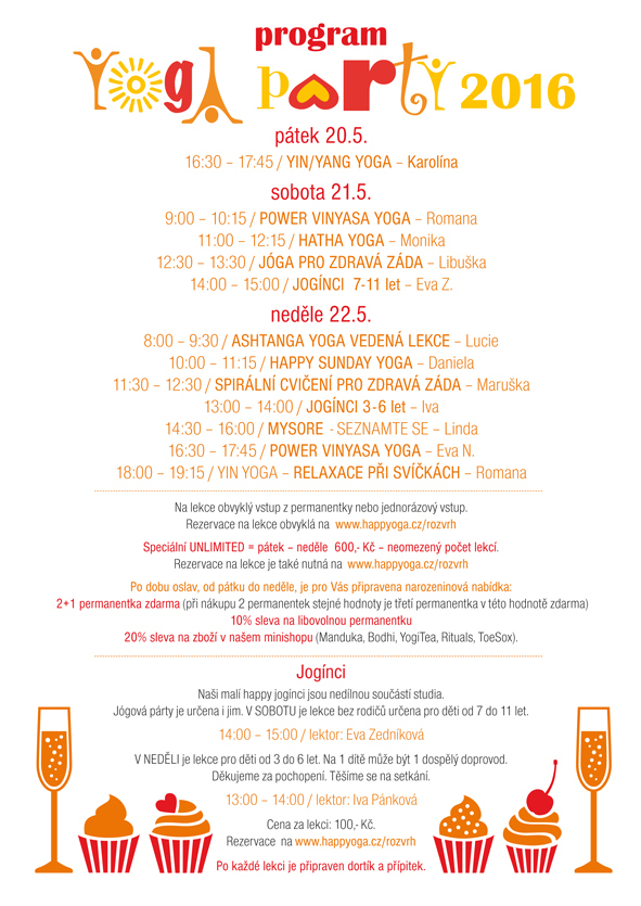 Happyoga studio slaví 2 roky. Připravili jsme jógovou narozeninovou oslavu a slavit budeme celý víkend 20. - 22.5.2016.